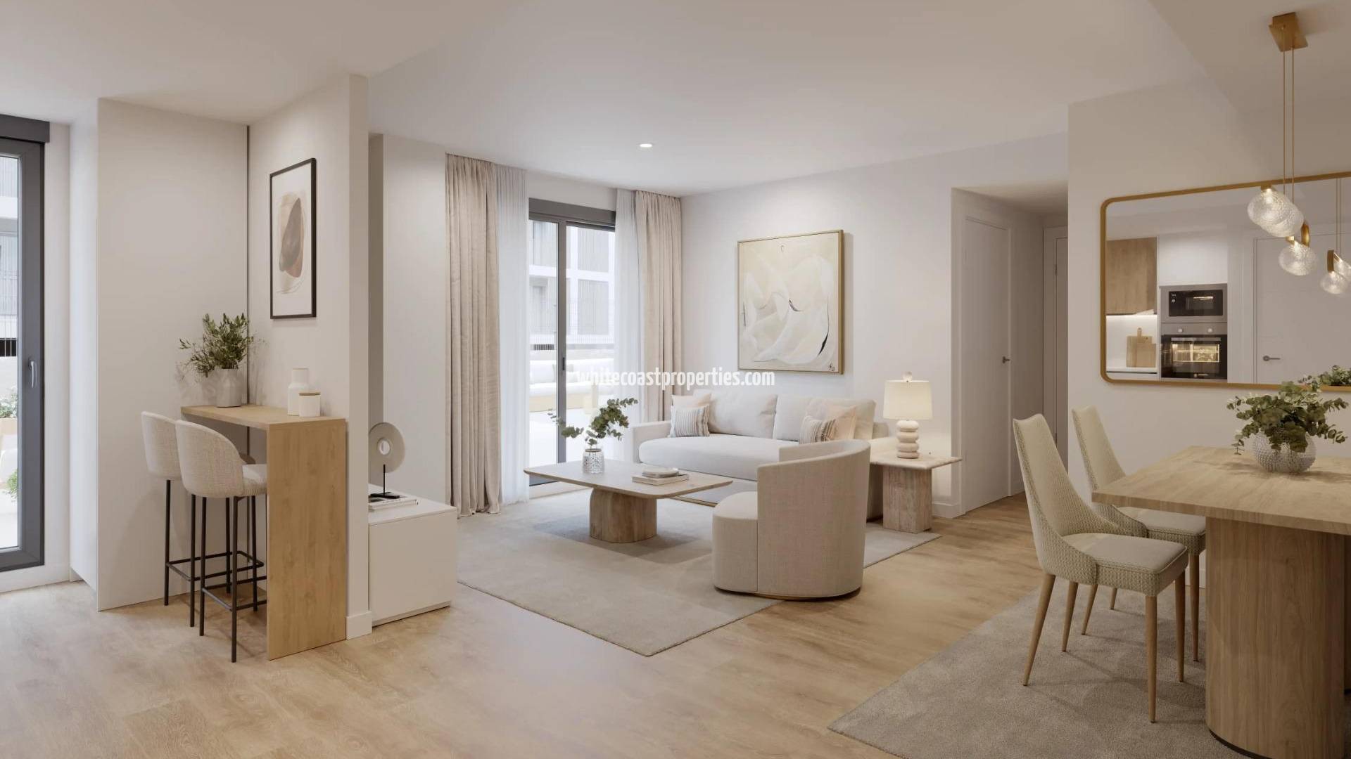 New Residential Development in Alicante with Open Views Newly Built Homes in a Privileged Location Discover this exclusive new residential development in Alicante, designed to offer maximum comfort and quality of life. With 84 2 and 3 bedroom homes, this complex is located in San Agustín - Pau II, a strategic area with all essential services within easy reach. Residents will enjoy a modern and functional environment, with large garden areas, communal swimming pool, children's play area, parking spaces and storage rooms. In addition, its elevated location guarantees unobstructed views of the city and the surrounding natural environment. Services and Amenities in the Area This residential complex is surrounded by a wide range of services that will make your day-to-day life easier: Educational centres: Up to 9 schools and institutes in the vicinity. Supermarkets and shops: Four large supermarkets nearby. Corfu Island Shopping Centre: With shops, gyms, restaurants and a variety of shops. Sports facilities: Areas for exercise and outdoor activities. The excellent infrastructure of the neighbourhood guarantees comfort, security and accessibility, making it an ideal place for families and investors alike. Quality and Design of the homes The homes have been designed with a modern and efficient approach, incorporating high quality materials and sustainable technology: Reinforced access door for added security. Ducted air conditioning (hot and cold) installed. Carpentry with thermal break and double glazing to improve thermal and acoustic insulation. Domestic hot water production by means of aerothermics, guaranteeing energy efficiency and sustainability. A Surrounding Area with Quick Access to the Main Points of Interest The San Agustín neighbourhood is situated on a gentle hill, offering panoramic views of Alicante's city skyline, Mount Benacantil and the surrounding mountains. Its Mediterranean climate and proximity to green spaces and leisure areas make it an ideal place to live. Key distances: Alicante city centre - 2 km. Alicante-Elche Airport - 14 km. San Juan Beach - 6 km. Alicante Golf Course - 7 km. Alicante Port - 5 km. Experience the Mediterranean Lifestyle in Alicante Alicante offers an exceptional climate, a vibrant cultural life and a first class infrastructure, making it one of the most desirable cities in Spain. This new residential development in San Agustin - Pau II combines elegant design with an unbeatable location. Contact us today to arrange a viewing and discover your next home in Alicante. 234