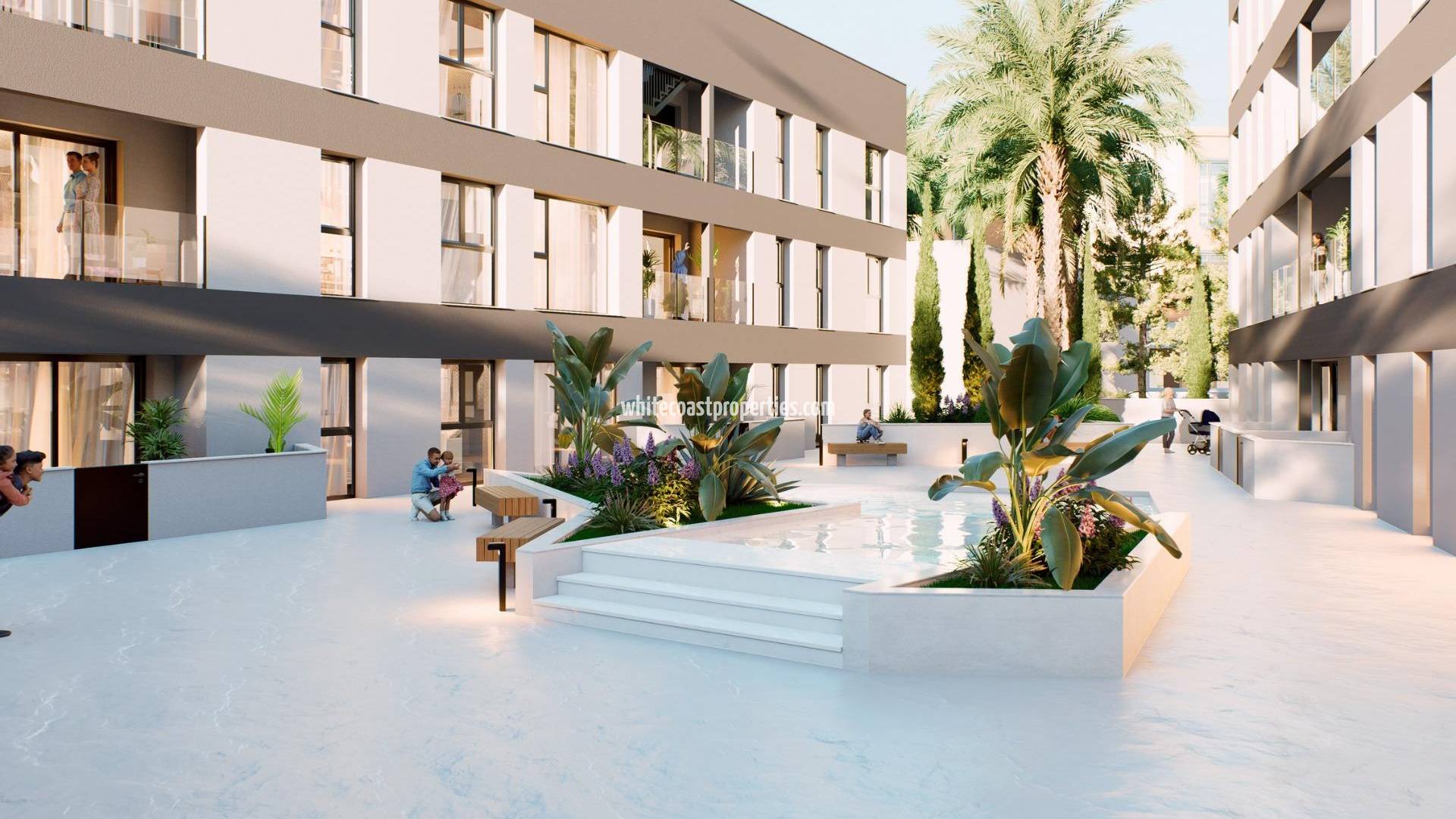 New Build Apartments for Sale in Lo Pagan (San Pedro del Pinatar) Near the Beach Modern Mediterranean Living in Lo Pagan Discover these stylish new build apartments for sale in Lo Pagan, a charming coastal area within San Pedro del Pinatar on the beautiful Costa Calida. Located in the well known neighborhood of Los Cuarteros, this residential development offers a privileged lifestyle just 500 meters from the beach and close to all essential services, restaurants, shops and leisure areas. Lo Pagan is famous for its relaxed seaside atmosphere, the calm waters of the Mar Menor and more than 300 days of sunshine each year. The area combines traditional Spanish charm with modern amenities, making it an ideal destination for both permanent living and holiday homes. Contemporary Apartments with Terraces and Private Solariums The development offers a selection of ground floor and middle floor apartments with spacious terraces, as well as exclusive penthouses with private rooftop solariums. The solariums include a pergola and barbecue area, creating the perfect setting for outdoor dining and relaxing under the Mediterranean sun. Each property has been designed to combine contemporary architecture with warm Mediterranean style. The open plan kitchen integrates seamlessly with the living and dining area, creating bright and comfortable living spaces. Large terraces extend the indoor areas and provide the perfect place for outdoor breakfasts or evening gatherings. Bedrooms feature built in wardrobes and the modern bathrooms are fully equipped, offering comfort and elegant finishes throughout the home. Quality Features and Community Facilities These homes are built with attention to detail and include high quality specifications to ensure comfort and efficiency. Fully furnished kitchen equipped with appliances Fully fitted bathrooms with modern finishes Ducted air conditioning fully installed Private parking space and storage room included with every property Residents can also enjoy excellent communal facilities including a swimming pool surrounded by relaxation areas and a fully equipped gym, ideal for maintaining an active lifestyle all year round. Excellent Location on the Costa Calida This development enjoys a strategic location close to beaches, golf courses and key destinations along the coast. Playa de Villananitos 0.5 km Real Club Nautico de Lo Pagan 0.5 km Lo Romero Golf 10 km Murcia International Airport 40 km Cartagena 35 km The nearby beaches of the Mar Menor such as Playa de La Puntica are known for their fine sand calm waters, ideal for swimming, sailing and water sports. Your New Home by the Sea Awaits Enjoy sunshine, beaches and a vibrant coastal lifestyle in one of the most sought after areas of the Costa Calida. Contact us today for more information about these new build apartments in Lo Pagan and secure your place by the sea.