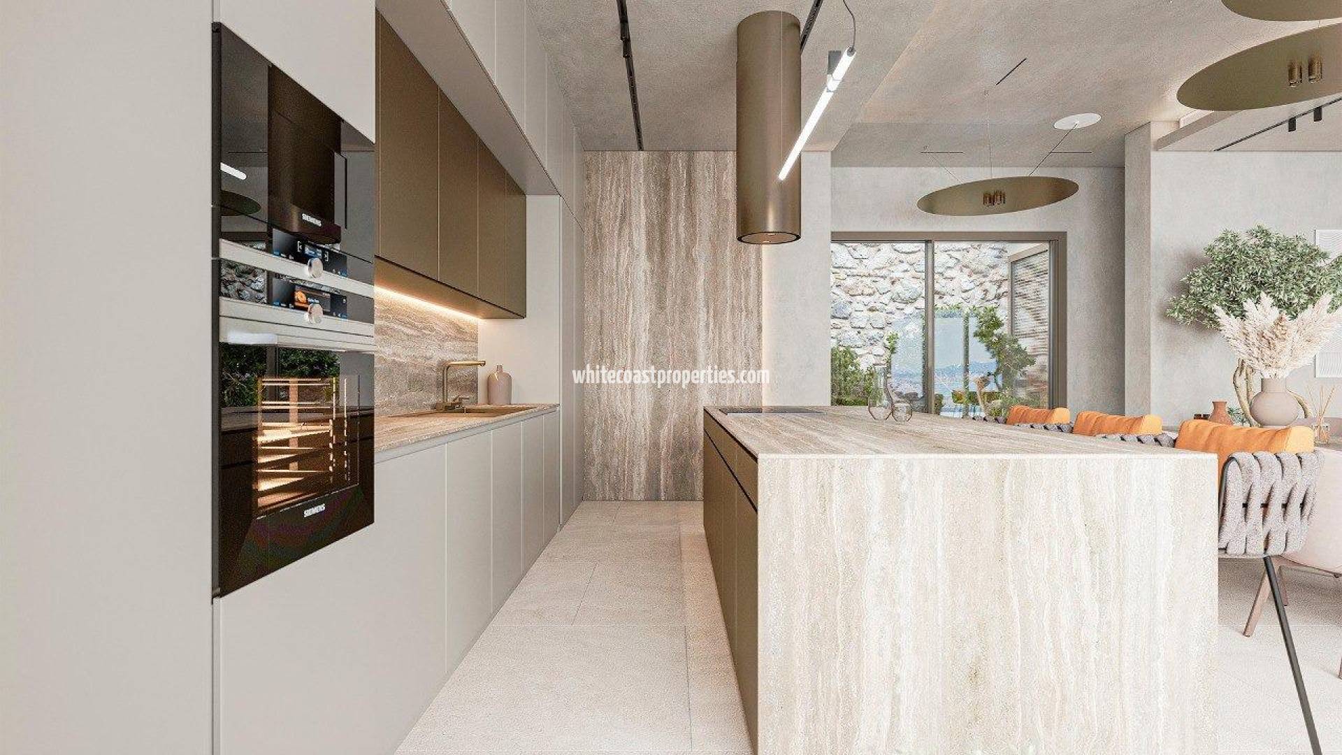 Contemporary Luxury Villa with Panoramic Sea Views in Altea Hills, Costa Blanca North Exclusive Modern Villa in the Prestigious Altea Hills Community This exceptional contemporary villa is located in the prestigious gated community of Altea Hills, one of the most sought after residential areas on the Costa Blanca. Set on an elevated plot, the property enjoys breathtaking panoramic views of the Mediterranean Sea and the surrounding mountains while offering complete privacy, tranquility and excellent sun exposure throughout the day. Designed with modern architecture and clean lines, the villa seamlessly integrates indoor and outdoor living spaces. Large floor to ceiling windows allow abundant natural light to flood the interiors while maximizing the stunning sea views and direct access to the terraces and outdoor areas. Spacious Open Plan Living with High End Design The villa is distributed across three levels connected by a private elevator, ensuring maximum comfort and accessibility. The main living area is a bright open space where the living room, dining area and designer kitchen flow together naturally. The modern kitchen features Italian cabinetry and Siemens appliances, creating a stylish and functional environment ideal for both everyday living and entertaining. The large windows create a continuous connection with the outdoor terraces, making the most of the Mediterranean lifestyle. Four Elegant Bedroom Suites with Sea Views The property offers four spacious bedrooms with en suite bathrooms, each designed as a private retreat with high quality finishes and direct access to terraces. The master suite stands out for its walk in wardrobe and luxurious bathroom with a freestanding bathtub overlooking the sea, creating a truly relaxing atmosphere inspired by luxury spa environments. Additional features include underfloor heating, fully installed ducted air conditioning, a fireplace, solar panels for energy efficiency, laundry room, storage space and an Italian furniture package. Premium Outdoor Living with Infinity Pool and Entertainment Areas The exterior of the villa has been carefully designed to maximize comfort and enjoyment. A spectacular infinity pool blends visually with the horizon, while the landscaped gardens, chill out areas and dining terraces provide the perfect setting for sunset cocktails or outdoor dinners. The property also includes space for a private gym, a state of the art home cinema and a private garage, completing this exclusive lifestyle offering. Prime Location on the Costa Blanca Altea Hills is a secure residential community known for its luxury villas, privacy and spectacular sea views. The charming town of Altea, famous for its historic old town, white houses and blue domed church, is just 6 km away and offers a wide selection of restaurants, boutiques and cultural attractions. Distances to key points of interest include Alicante International Airport 70 km, Valencia Airport 140 km, Altea Club de Golf 5 km, Marina Greenwich port 4 km and the beaches of Altea and Calpe within 3 to 10 km. This unique property combines contemporary architecture, a privileged location and an exceptional Mediterranean lifestyle. Contact us today for more information or to arrange a private viewing of this extraordinary villa. 234