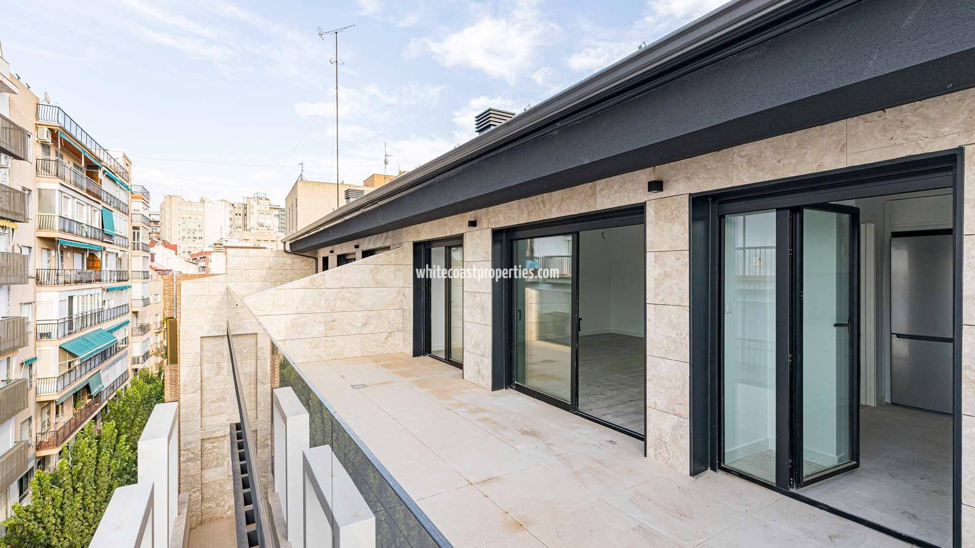 New Build Duplex Penthouses in Murcia City Center Near Plaza Mayor Exclusive Living in the Heart of Murcia Discover these spacious new build duplex penthouses located in the very center of Murcia, just steps from Plaza Mayor de Murcia. Set between the historic heart of the city and the commercial area near El Corte Ingles, this development offers a unique opportunity to enjoy modern comfort in one of the most sought after urban locations in the Region of Murcia. Murcia is known for its vibrant city life, impressive Baroque architecture, renowned gastronomy and pleasant climate throughout the year. Living in the city center means having restaurants, boutiques, cultural venues, schools and all essential services within walking distance. Spacious 3 and 4 Bedroom Duplex Penthouses with Large Terraces These exclusive penthouses offer 3 or 4 bedrooms distributed over two levels, providing generous and functional living spaces ideal for families or those seeking extra room for working from home. One of the standout features is the expansive private terraces of more than 40 m2, offering open views and abundant natural light. These outdoor spaces are perfect for relaxing, entertaining guests or enjoying outdoor dining in the city center. The building includes an elevator and full accessibility for people with reduced mobility. Optional parking spaces and storage rooms are available at an additional cost, adding convenience in this prime urban setting. High End Finishes and Energy Efficiency Each penthouse has been designed to deliver maximum comfort and efficiency. The fully equipped kitchen with integrated appliances creates a perfect space for cooking enthusiasts. Key features include: Energy efficiency rating A Fully installed ducted air conditioning Underfloor heating Home automation package Video intercom system LED lighting in living room, bathrooms and bedrooms These high quality specifications ensure low energy consumption, reduced emissions and optimal thermal comfort throughout the year. Prime Location and Distances Murcia Cathedral 0.5 km Plaza Mayor de Murcia 0.3 km Murcia train station 1.5 km Altorreal Golf 15 km Murcia International Airport 25 km Mediterranean beaches 50 km Secure Your Luxury Penthouse in Murcia These new build duplex penthouses combine space, energy efficiency and an unbeatable central location in Murcia. Contact us today to receive more information or to arrange a private visit and secure your new home in the heart of the city. 234