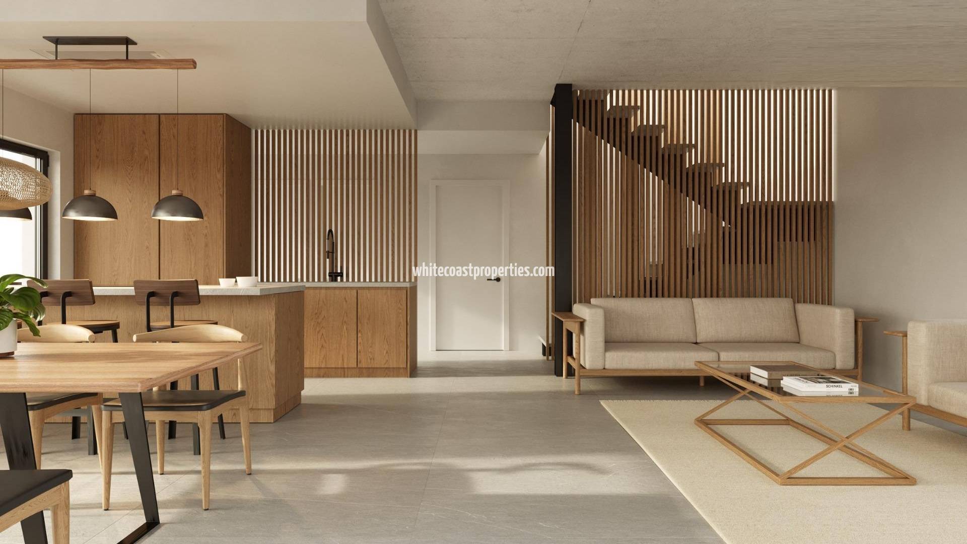 НОВЫЕ ТАУНХАУСЫ В ПОЛОПЕ Современные таунхаусы и виллы с террасами и солярием, полностью огороженные, с парковочной зоной для автомобилей и частным бассейном в Полопе. Современная недвижимость с 3 просторными спальнями со встроенными шкафами (главная спальня на первом этаже, с ванной комнатой и гардеробной), 2 просторными ванными комнатами, большой гостиной-столовой с открытой кухней, просторными террасами. Кухня оборудована базовыми шкафами и столешницами из кварцевого камня, с керамической плитой, духовкой, вытяжкой, холодильником, стиральной и посудомоечной машинами, а также аэротермическим обогревателем. Первые качества: внутренняя отделка деревом и белым ламинатом, внешняя отделка антрацитово-серым ПВХ с двойным остеклением и разрывом теплового моста, автоматические жалюзи с алюминиевыми планками, керамические полы 1-го качества с нескользящим покрытием, гладкие стены, бронированная дверь с 5 точками крепления, большие встроенные шкафы. Город Полоп предлагает удивительные возможности для любителей активного отдыха в окружении природы и непревзойденного спокойствия. Муниципалитет, расположенный менее чем в 10 км от Бенидорма, Альтеи и их пляжей, отличается средиземноморским климатом с прохладной температурой и чистым воздухом. Он простирается от рек Гвадалест и Альгар до города Вильяхойоса, включая пляжи Альбира и Бенидорма; вглубь территории он граничит с Кальосой и Гвадалестом.