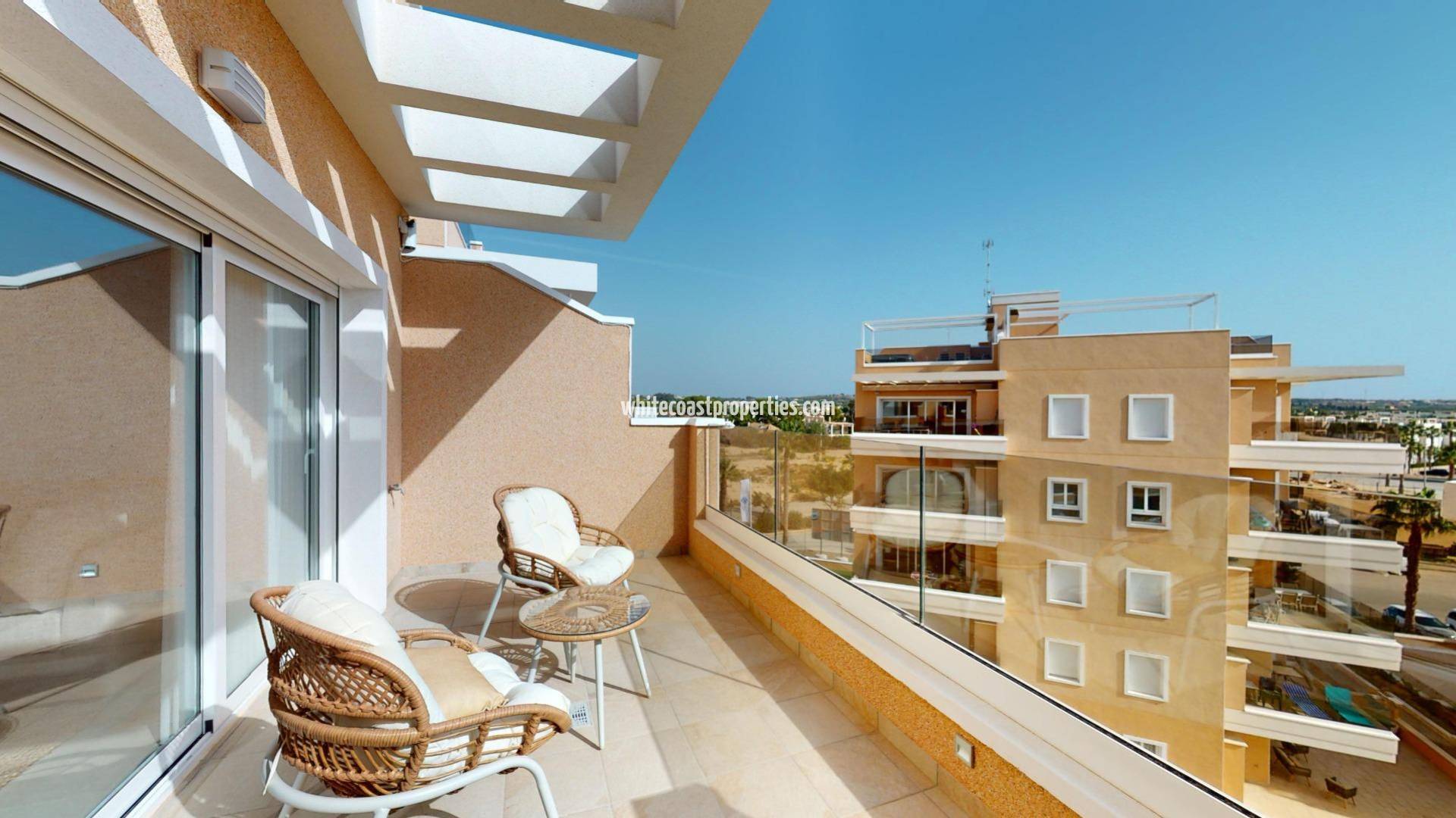 НОВЫЙ ЖИЛОЙ КОМПЛЕКС В ЭЛЬ-РАСО, ГВАРДАМАР-ДЕЛЬ-СЕГУРА Новый жилой комплекс апартаментов в современном стиле в Эль-Расо, Гвардамар-дель-Сегура! Апартаменты имеют 3 спальни, 2 ванные комнаты, салон открытого плана с кухней, первый этаж с частным садом, средний этаж с террасой и верхний этаж с частным солярием. Комплекс с бассейном, зелеными зонами, полями для гольфа, СПА, детской площадкой, биотуалетами и спортивными площадками. Комплекс расположен в зеленой зоне, недалеко от соленого озера, всех удобств, в нескольких минутах ходьбы от коммерческого центра, баров и ресторанов. Эль Расо является частью Гуардамар дель Сегура. Гуардамар-дель-Сегура - город, расположенный на юге Коста-Бланки. С его 11-километровым естественным пляжем и большим сосновым лесом. В Гвардамар-дель-Сегура есть большой порт, где круглый год проводятся различные мероприятия, большой спортивный центр с настольным теннисом, теннисом, футболом и большим бассейном с подогревом, который работает круглый год. Здесь также есть библиотека с бесплатным wifi и компьютерами. Гвардамар-дель-Сегура находится всего в 20 км от аэропорта Аликанте - Эльче (Эль-Альтет), откуда каждый день совершается множество рейсов с пересадками в основные европейские города, что обусловлено спросом на туристов на побережье Коста-Бланка.