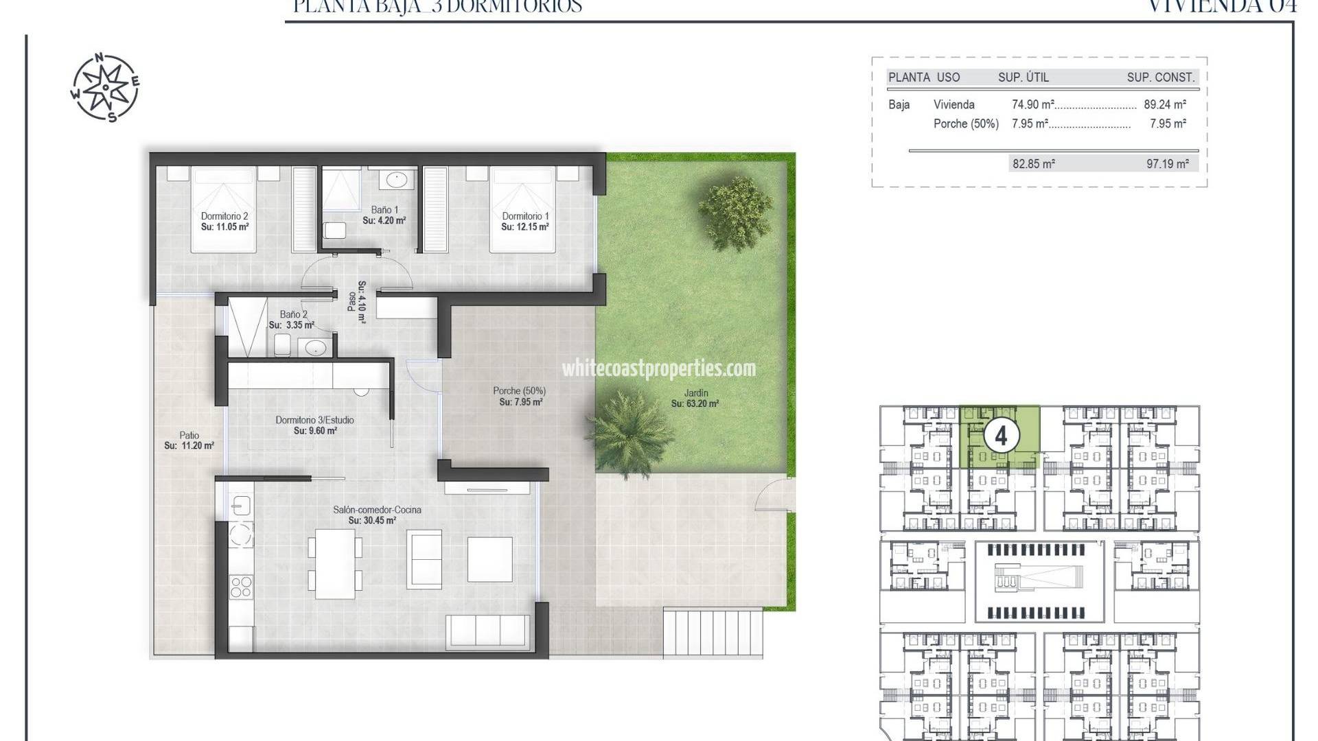 Новые апартаменты, бунгало и виллы в гольф-курорте Condado de Alhama, Мурсия Современные дома рядом с гольф-полем и природой Добро пожаловать в новый жилой комплекс, состоящий из бунгало, апартаментов, пентхаусов и отдельно стоящих вилл, расположенный в престижном гольф-курорте Condado de Alhama, в регионе Мурсия. Этот частный курорт предлагает круглосуточную охрану, красивые ландшафтные сады и прямой доступ к гольф-полю, спроектированному Джеком Никлаусом, что делает его идеальным местом для любителей гольфа и семей, ищущих спокойной средиземноморской жизни. Комплекс расположен в нескольких минутах ходьбы от торгового центра Al Kassar, поэтому жители могут легко добраться до магазинов, ресторанов, баров и всех необходимых услуг курорта. Современный дизайн и высокое качество строительства Комплекс предлагает бунгало с 2 или 3 спальнями и 2 ванными комнатами, доступные в двух вариантах: Бунгало на первом этаже с садом спереди и патио сзади. Некоторые дома также имеют частную парковку в саду. Бунгало на верхнем этаже с частной верандой и просторным солярием на крыше, откуда открывается потрясающий вид на поле для гольфа и окружающие горы. Все дома построены в соответствии с высокими стандартами качества и включают: Встроенная кухня с холодильником, духовкой, микроволновой печью, вытяжкой и посудомоечной машиной Предварительная установка канального кондиционера в гостиной и спальнях Современные ванные комнаты с душевыми перегородками, туалетными столиками, зеркалами и потолочными точечными светильниками Встроенные шкафы с ящиками и полками Аэротермальная система водонагрева Электрические алюминиевые жалюзи в спальнях Усиленная входная дверь Летняя кухня на открытом воздухе в бунгало на верхнем этаже Внутреннее и наружное освещение (кроме декоративных ламп) Телевизионные и телефонные розетки во всех комнатах Курортный образ жизни в окружении природы Condado de Alhama — это безопасный, устоявшийся курорт, окруженный природой и горами, идеально подходящий для жизни на свежем воздухе. Жители имеют доступ к общественному бассейну с зоной для загара, средиземноморским и тропическим садам, а также множеству пешеходных и велосипедных маршрутов на территории комплекса. Отличный доступ к ключевым местам Международный аэропорт Мурсии (Корвера): 40 км Пляжи Мазаррона: 25 км Центр города Мурсия: 35 км Город Альхама-де-Мурсия: 15 км Обеспечьте себе новый дом на побережье Коста-Калида Если вы ищете место для отдыха, круглогодичного проживания или инвестиций, этот комплекс предлагает идеальное сочетание современного дизайна, комфорта и удобного расположения. Свяжитесь с нами сегодня, чтобы запланировать визит и найти свою идеальную недвижимость в Condado de Alhama Golf Resort.