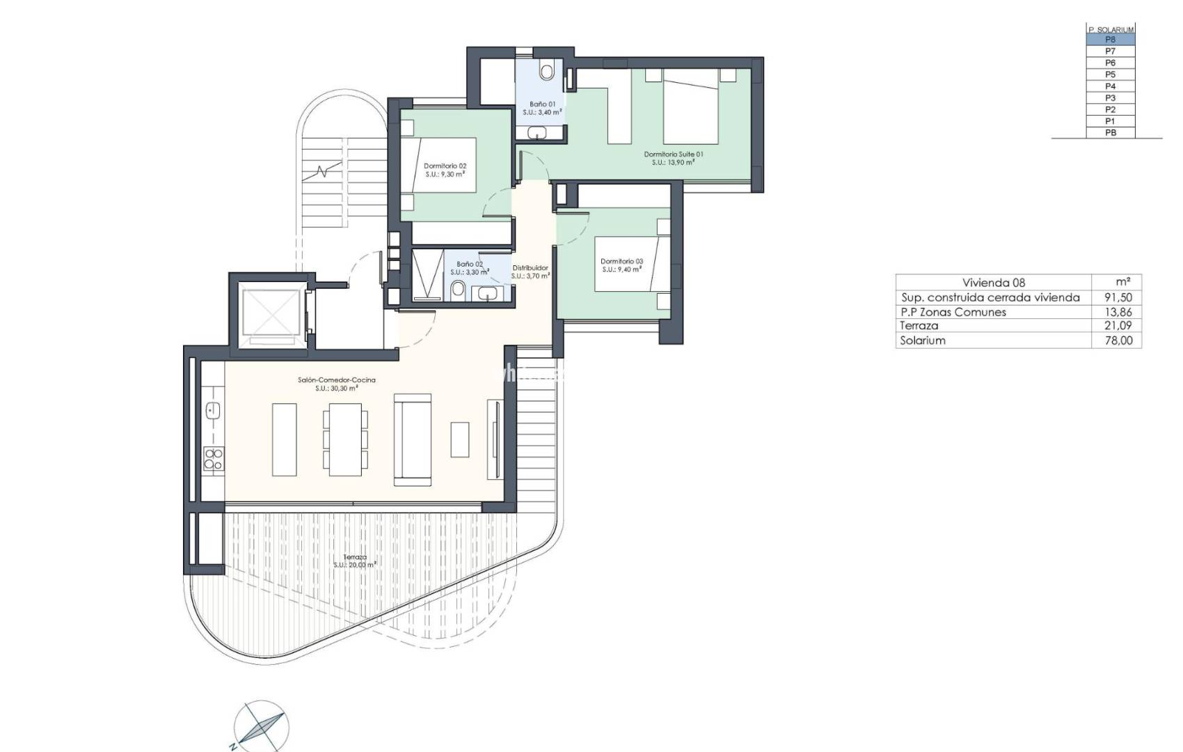 Новые апартаменты с видом на реку в Гуардамар-дель-Сегура Эксклюзивный жилой комплекс из 9 современных домов Этот новый жилой комплекс в Гуардамар-дель-Сегура, Аликанте, предлагает уникальную возможность жить в привилегированном месте с прекрасным видом на реку Сегура и долину Вега-Баха. Здание состоит всего из 9 эксклюзивных домов, по одному на этаже, что гарантирует уединение, тишину и комфорт. Просторные дома с большими террасами Каждая квартира имеет 3 спальни и 2 ванные комнаты, а также просторные открытые пространства: Первый этаж с частным садом 120 м² Промежуточные этажи с террасами 18 м² Аттик с террасой и частным солярием 78 м² Эти дома были спроектированы в современном стиле, идеально подходящем как для постоянного проживания, так и для отдыха на побережье Коста-Бланка. Оснащение и высокое качество Дома сдаются с отличной отделкой, рассчитанной на комфорт и эффективность: Бронированная входная дверь Ванные комнаты с подвесными раковинами, зеркалом, душевой кабиной от стены до стены и стеклянной перегородкой Система аэротермии для горячего водоснабжения (100 литров) Парковочное место включено в цену Идеальное расположение рядом с морем и всеми удобствами Жилой комплекс находится всего в 1,4 км от пляжа и в нескольких минутах от порта Гуардамар, естественного соснового бора и оживленного торгового района с супермаркетами, ресторанами и всеми необходимыми услугами. Примерное расстояние до ключевых точек: Центр Гуардамара: 1,2 км (15 минут пешком) Ближайший пляж: 1,4 км Пристань для яхт: 1 км Парк Рейна София: 1,5 км Поле для гольфа La Marquesa (Сьюдад-Кесада): 9 км Торговый центр Habaneras (Торревьеха): 13 км Аэропорт Аликанте-Эльче: 33 км Гардамар также предлагает прямое автобусное сообщение с Аликанте и Торревьехой, что облегчает передвижение без необходимости иметь собственный автомобиль. Ваш новый дом в Гардамаре ждет вас Будь то инвестиция, постоянное место жительства или дом для отдыха, этот жилой комплекс представляет собой исключительную возможность в одном из самых востребованных районов Коста-Бланка. Свяжитесь с нами сейчас и обеспечьте себе квартиру с видом в Гардамаре-дель-Сегура.