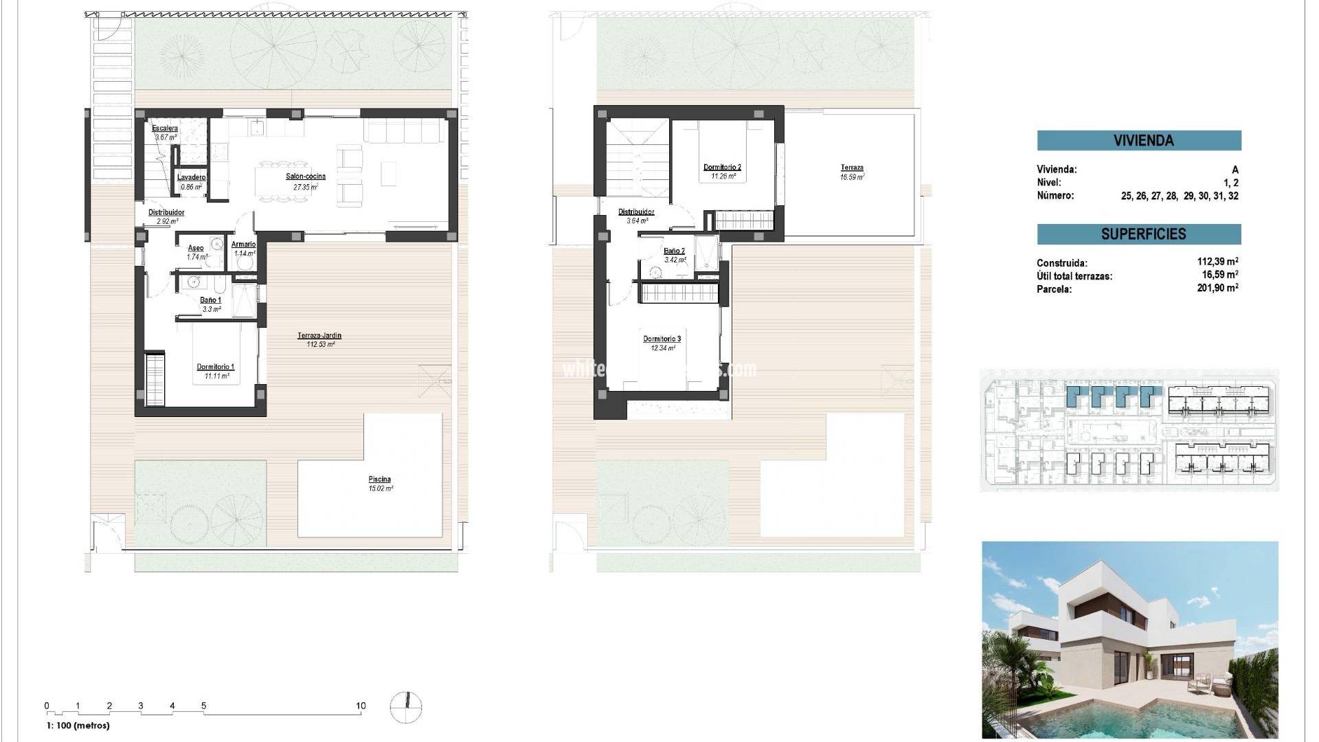 Эксклюзивные виллы и бунгало на Коста Калида - дизайн, комфорт и привилегированное местоположение Проект, объединяющий уединение и жизнь в обществе Откройте для себя новую концепцию жилья на побережье Коста-Калида, предназначенную для тех, кто ищет идеальное сочетание уединения, комфорта и общественной жизни. Этот эксклюзивный комплекс предлагает отдельно стоящие виллы и бунгало с доступом к просторным коммунальным зонам и общему бассейну, обеспечивая лучшее из двух миров: спокойствие частного дома и комфорт общих пространств для отдыха с друзьями, семьей и соседями. Все дома включают в себя парковочное место и кладовую в подвале, что гарантирует безопасность и удобство для жителей. Современный дизайн и возможности персонализации В этом комплексе предлагается широкий выбор домов, отвечающих различным потребностям и стилю жизни: Бунгало на первом этаже с частными садами площадью до 122 м². Бунгало на верхнем этаже с большими террасами и частным солярием. Одно- или двухэтажные отдельные виллы с участками площадью от 201 до 356 м² и различными вариантами планировки и отделки. Каждый дом спроектирован таким образом, чтобы максимально использовать естественное освещение, создавая просторные и уютные помещения. Главная спальня была тщательно продумана, чтобы гарантировать приватность и комфорт, полностью отделяя спальную зону от ванной комнаты, что позволяет избежать прерывания света или шума в ночное время. Качество и экологичность в каждой детали Эти дома были построены из высококачественных материалов и оснащены экологичными технологиями, такими как солнечные батареи и аэротермика, для повышения энергоэффективности. Выдающиеся особенности: Моторизованные жалюзи в спальнях. Бронированная входная дверь для большей безопасности. Предварительная установка канального кондиционера. Современные ванные комнаты с перегородками из закаленного стекла и подвесной мебелью со светодиодным зеркалом. Стратегическое расположение в Лос-Алькасаресе Расположенный всего в нескольких метрах от престижного поля для гольфа Serena Golf и в 1 км от пляжей Мар Менор, этот комплекс занимает привилегированное положение в Лос-Алькасаресе, одном из самых перспективных районов Коста Калида. Кроме того, легкий доступ к автомагистрали AP-7 позволяет быстро добраться до других пунктов назначения в регионе и облегчает доступ к основным услугам, таким как супермаркеты, спортивные центры, школы и аптеки. Расстояния до достопримечательностей Гольф-клуб La Serena Golf - 1 км (2 минуты на машине). Пляж Мар Менор - 1 км (2 минуты на машине или 10 минут пешком). Аэропорт Мурсии - 35 км (30 минут на машине). Порт Картахены - 22 км (20 минут на машине). Местный торговый центр - 3 км (5 минут на машине). Средиземноморский образ жизни с высокой рентабельностью Этот проект не только представляет собой отличный вариант для наслаждения средиземноморским стилем жизни, но и является надежной инвестицией в растущий район. Не упустите эту уникальную возможность. Свяжитесь с нами сегодня, чтобы получить более подробную информацию и забронировать свой идеальный дом на побережье Коста-Калида.