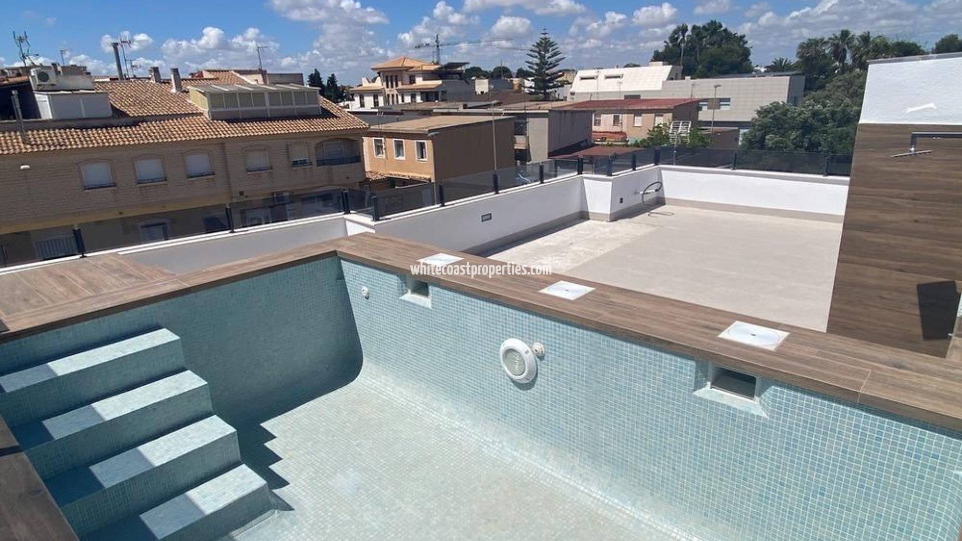 Новые бунгало в Ло Паган: современная жизнь рядом с пляжем Привилегированное расположение в Ло Паган, Сан-Педро-дель-Пинатар Откройте для себя идеальный прибрежный образ жизни с этими новыми бунгало в Ло Паган, очаровательном районе Сан-Педро-дель-Пинатар. Расположенные всего в 1,2 км от прекрасного пляжа Вилла Нанитос, они находятся в 15 минутах ходьбы от песчаных пляжей и легендарного Молино Кинтин. Это идеальное расположение для любителей пляжного отдыха и водных видов спорта: в непосредственной близости находятся яхт-клубы и пристани для яхт. Кроме того, все необходимые удобства, такие как супермаркеты, бары и рестораны, находятся всего в нескольких минутах ходьбы. Особенности В этих стильных бунгало есть 2 спальни, 2 ванные комнаты, кухня и гостиная открытой планировки. В бунгало установлены кондиционеры, встроенные шкафы и современные интерьеры. На первом этаже есть большая терраса с возможностью установки частного бассейна (за дополнительную плату), а на верхнем этаже - частный солярий с бассейном, идеально подходящий для отдыха под средиземноморским солнцем. Высококачественная отделка В каждом бунгало предусмотрено парковочное место, а отделка всех квартир соответствует высоким стандартам. Среди особенностей - кухонная техника Bosch, электрические жалюзи, предварительная установка канального кондиционера, полностью оборудованные ванные комнаты и светодиодное освещение как внутри, так и снаружи. Идеально подходит для круглогодичного проживания Ло Паган предлагает спокойный образ жизни с гостеприимным и устоявшимся сообществом. Благодаря мягкому зимнему климату жители могут наслаждаться круглогодичной активностью. В районе есть крытые бассейны, спортивные сооружения и разнообразные общественные мероприятия. Природные грязевые ванны и спокойные воды Мар Менор добавляют ему привлекательности, делая его лучшим местом для оздоровления и релаксации. Достопримечательности поблизости Торговый центр Dos Mares: 5 минут на машине. Аэропорт Мурсии (Корвера): 30 минут езды на автомобиле. Аэропорт Аликанте: 1 час езды Поля для гольфа и пристани для яхт находятся в нескольких минутах езды от отеля, что делает его отличным местом как для отдыха, так и для комфорта.