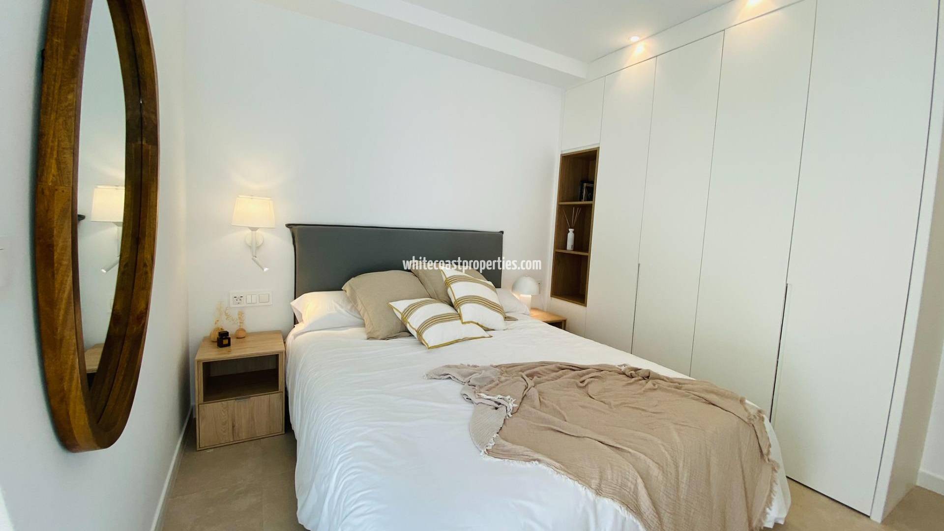 Новый жилой комплекс с бунгало в Пилар-де-ла-Орадада Эксклюзивные современные бунгало в Пилар-де-ла-Орадада Этот новый комплекс предлагает 16 стильных бунгало в престижном городке Пилар-де-ла-Орадада, расположенном в самой южной части Коста-Бланки. На выбор предлагаются варианты с 2 или 3 спальнями, в каждом из которых есть 2 ванные комнаты. На первом этаже расположены просторные передние и задние террасы, обеспечивающие прямой доступ к общему бассейну и саду, а на верхнем этаже - большой частный солярий на крыше. Просторная жизнь с современными характеристиками В каждом бунгало есть светлая и открытая гостиная/столовая и полностью оборудованная кухня с большими раздвижными дверями, которые органично соединяют внутреннее и внешнее пространство. Спальни оснащены встроенными шкафами. В комплексе установлены канальные кондиционеры, а для легкого доступа на верхние этажи предусмотрен лифт. Кроме того, для всех квартир предусмотрены частные парковочные места. Удачное расположение в Пилар-де-ла-Орадада Пилар-де-ла-Орадада - традиционный испанский городок с оживленной главной улицей, на которой расположены супермаркеты, магазины, рестораны и бары. Прекрасные пляжи Торре-де-ла-Орадада и Миль-Пальмерас находятся всего в 5 минутах езды. Комплекс удобно расположен в 40 км от аэропорта Корвера (Мурсия) и в 55 км от аэропорта Аликанте, что делает его идеальным местом как для постоянного проживания, так и для отдыха.