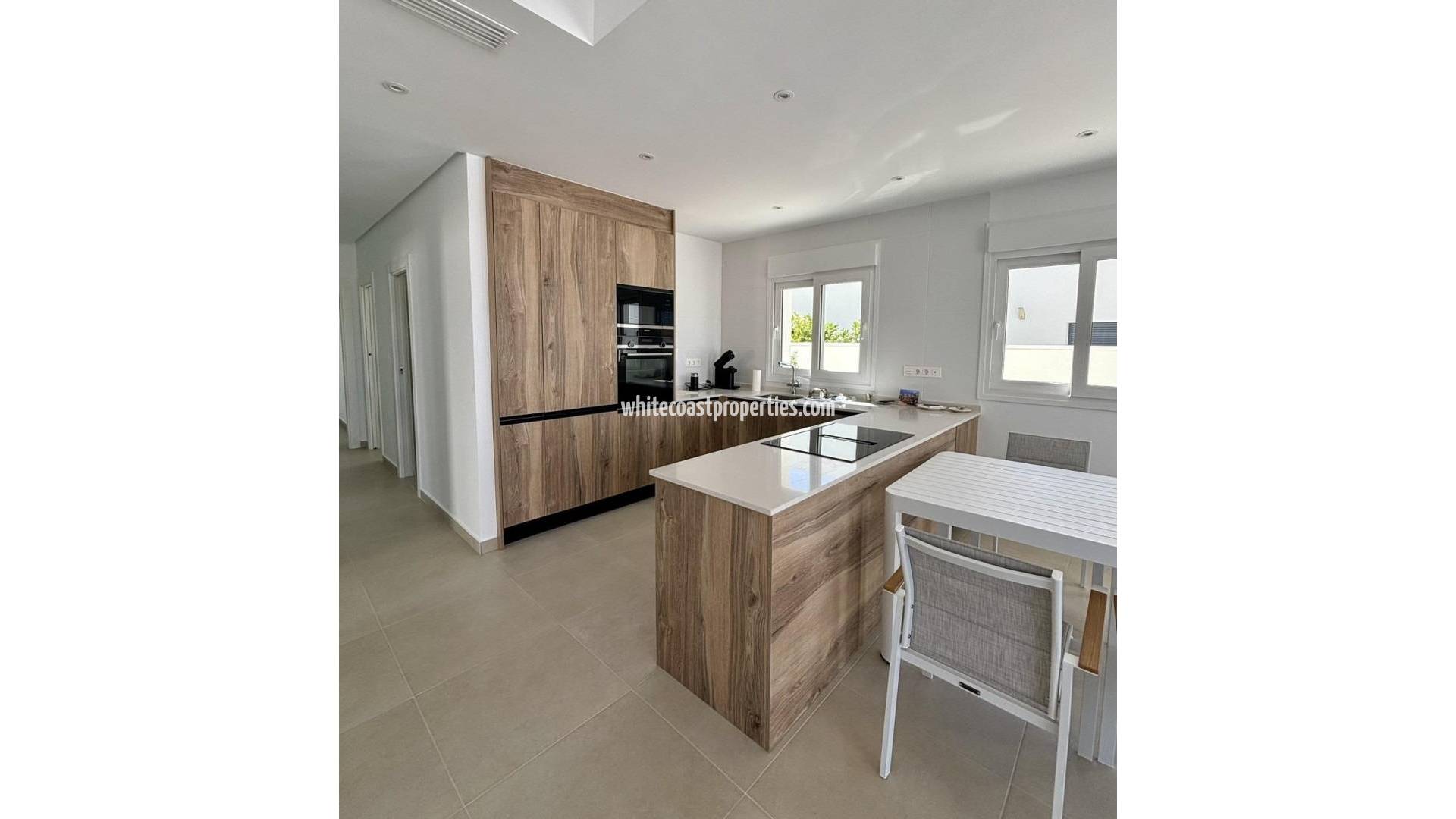 Новые средиземноморские виллы в Бенихофаре Современные и стильные виллы в Бенихофаре Расположенные на окраине очаровательного городка Бенихофар, эти потрясающие современные виллы предлагают идеальное сочетание современного дизайна и традиционной испанской жизни. Бенихофар, расположенный в самом сердце Коста-Бланки, находится всего в 30 минутах езды на автомобиле от города Аликанте и его международного аэропорта. Район также удобно расположен в 8 км от золотых песчаных пляжей и в 10 минутах от двух высококлассных полей для гольфа. Просторные виллы с частными бассейнами Каждая вилла расположена на обширном участке площадью более 400 м², имеет частный бассейн (7x3,5 м) и 3 спальни с 2 ванными комнатами, все на одном этаже. Дополнительные опции включают солярий и кладовую. Виллы построены по самым высоким стандартам, с высококачественной отделкой, такой как окна Schüco, моторизованные ставни, фотоэлектрические солнечные панели и автоматическая система орошения сада. Традиционный испанский город с современными удобствами Бенихофар - традиционный испанский город, известный своими яркими праздниками, еженедельными уличными рынками и живописной городской площадью. Он граничит с Сьюдад-Кесада, расположенным всего в 2 минутах езды на автомобиле. Здесь вы найдете широкий спектр развлечений, включая рестораны, бары, магазины, живые развлечения, летний аквапарк и загородный клуб. Это идеальное место для круглогодичного проживания, чтобы наслаждаться солнцем, морем и собственным бассейном в спокойной традиционной обстановке.