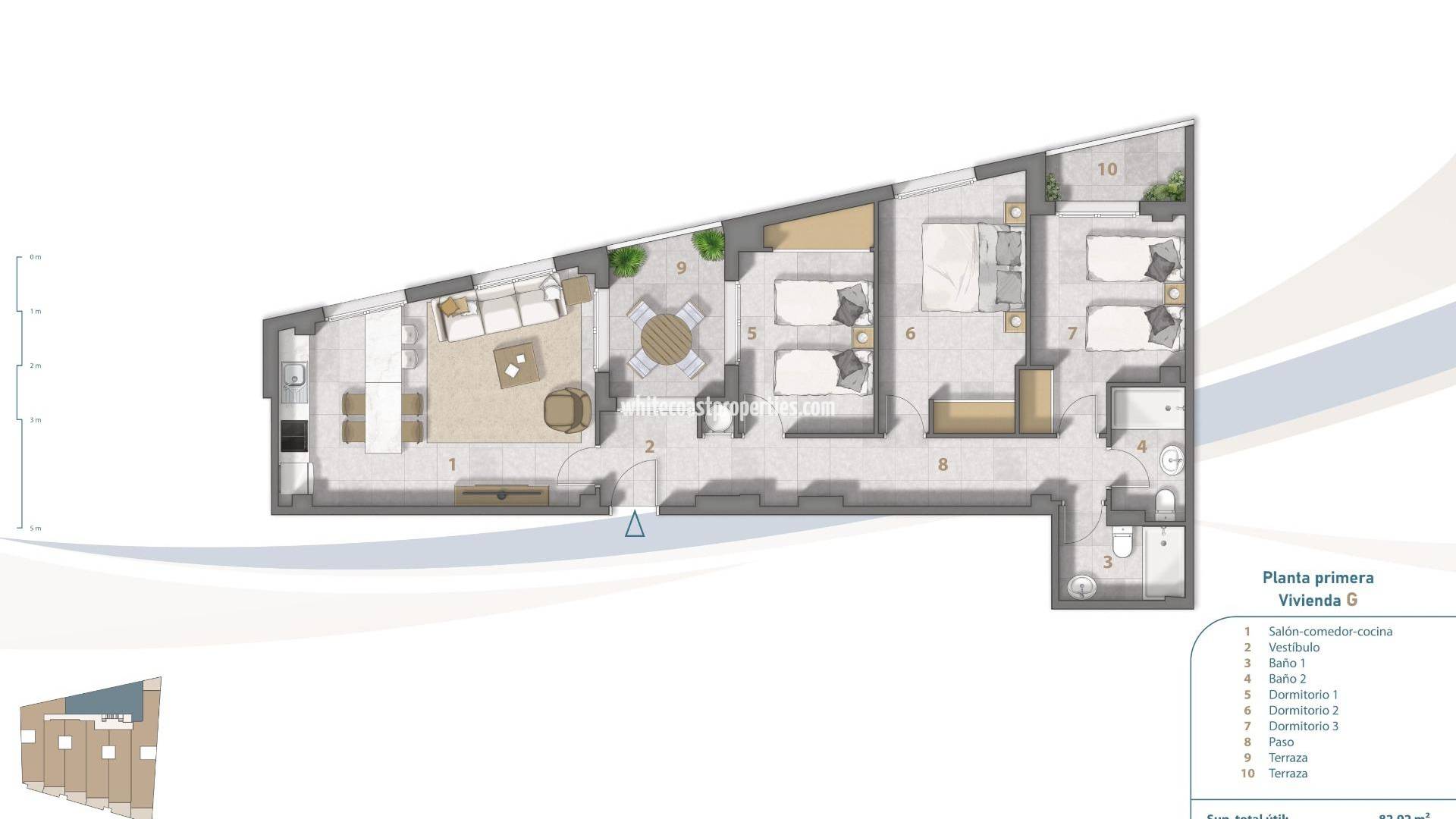 НОВЫЙ ЖИЛОЙ КОМПЛЕКС ПЕРВОЙ ЛИНИИ В САН-ПЕДРО-ДЕЛЬ-ПИНАТАР Ло-Паган, расположенный на берегу пленительного Мар-Менора, - это город в Мурсии, в котором органично сочетаются природная красота и культурное богатство, предлагая идеальное место для отдыха тем, кто ищет спокойный оазис. Удобно расположенный, всего в 57 минутах езды от аэропорта Аликанте, Ло Паган манит вас расслабиться, исследовать и создать заветные воспоминания в этом идиллическом испанском прибрежном городке. Побалуйте себя воплощением изысканной жизни в наших тщательно продуманных новостройках, предлагающих пентхаусы и апартаменты с 1, 2 и 3 спальнями. Безупречно спроектированный 21 объект изящно распределен по 3-уровневым блокам. Жилая площадь каждого блока спроектирована таким образом, чтобы впустить естественный свет и создать светлые, просторные и современные жилые помещения, которые органично вписываются в прибрежные окрестности. Ознакомьтесь с разнообразием резиденций, доступных в трех различных моделях и размерах. Жилой комплекс приглашает вас окунуться в образ жизни непревзойденной роскоши с целым рядом изысканных удобств: Погрузитесь в освежающие воды общего бассейна. Насладитесь удобством и безопасностью подземной парковки. Проведите свой досуг на общей террасе на крыше. В некоторых апартаментах есть частные террасы. Шесть пентхаусов на 2 этаже имеют уникальную особенность - прямой доступ к частному солярию через террасу. Также для дополнительного удобства предусмотрено место для хранения вещей. Кроме того, у жителей есть возможность улучшить свой отдых на свежем воздухе, добавив летнюю кухню к своему частному солярию. Каждый дом спроектирован так, чтобы вы почувствовали себя в вечном отпуске, в убежище, где спокойствие сочетается с изысканностью. Некоторые дома имеют фронтальный вид на море, некоторые - боковой. Привилегированное расположение Сан-Педро-дель-Пинатар на побережье Мар Менор и Средиземного моря привлекает тех, кто интересуется парусным спортом и водными видами спорта. Здесь есть причалы для яхт и парусные клубы, а пляжи и природные грязевые ванны привлекают тех, кто ищет безопасное солнце, море и песок. В Сан-Педро-дель-Пинатар сложилось устойчивое сообщество, которое предлагает отличный выбор развлечений, включая крытый бассейн и спортивные сооружения, а также круглогодичную программу социальных мероприятий в приятную зимнюю погоду. Преимущества грязевых ванн, типичных для этого региона, или спокойных вод Мар Менор способствовали росту Ло Паган, который в настоящее время располагает всеми видами удобств. Кроме того, он имеет прекрасное расположение, всего в 5 минутах от коммерческого центра Дос Марес. Аэропорт Мурсия/Корвера находится в 30 минутах езды, а аэропорт Аликанте - в часе езды.