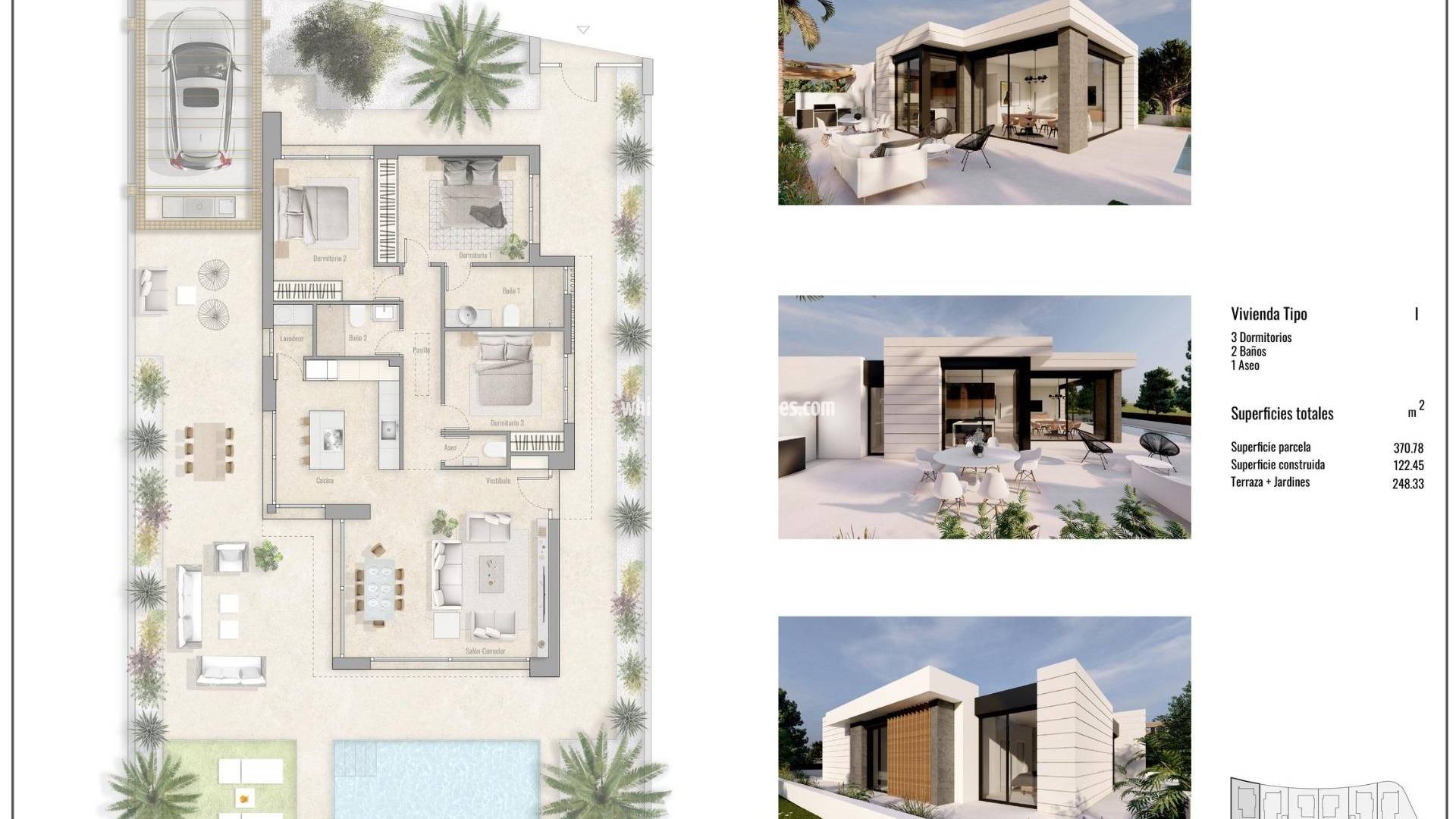 НОВЫЕ ВИЛЛЫ В ПИЛАР-ДЕ-ЛА-ОРАДАДА НА ПОЛЕ ДЛЯ ГОЛЬФА Новый жилой комплекс из 6 отдельно стоящих вилл в Пилар де ла Орадада. Одноуровневые виллы имеют 3 спальни, 2 ванные комнаты, гостевой туалет, кухню открытого плана с гостиной, встроенные шкафы, частный сад с частным бассейном и парковочное место у дороги. Пилар де ла Орадада - самый южный город и муниципалитет на побережье Коста Бланка в провинции Аликанте. Город расположен на границе между Валенсийским сообществом и регионом Мурсия. Пилар-де-ла-Орадада - типичный испанский городок, расположенный всего в 2 км от побережья и популярных пляжей Торре-де-ла-Орадада. В центре Пилар-де-ла-Орадада вы найдете все удобства: магазины, кондитерские, банки и т.д. вдоль главной улицы "Калле Майор". Вы также ощутите прекрасную атмосферу возле местной церкви на площади Пласа-де-ла-Иглесия, где есть несколько кафе. В Пилар-де-ла-Орадада хорошо развита сеть велосипедных и пешеходных дорожек, а также имеется большое предложение различных спортивных развлечений. 18-луночное поле для гольфа Lo Romero находится всего в нескольких минутах езды от города. Аэропорты Корвера (Мурсия) и Аликанте находятся соответственно в 40 и 55 минутах езды.