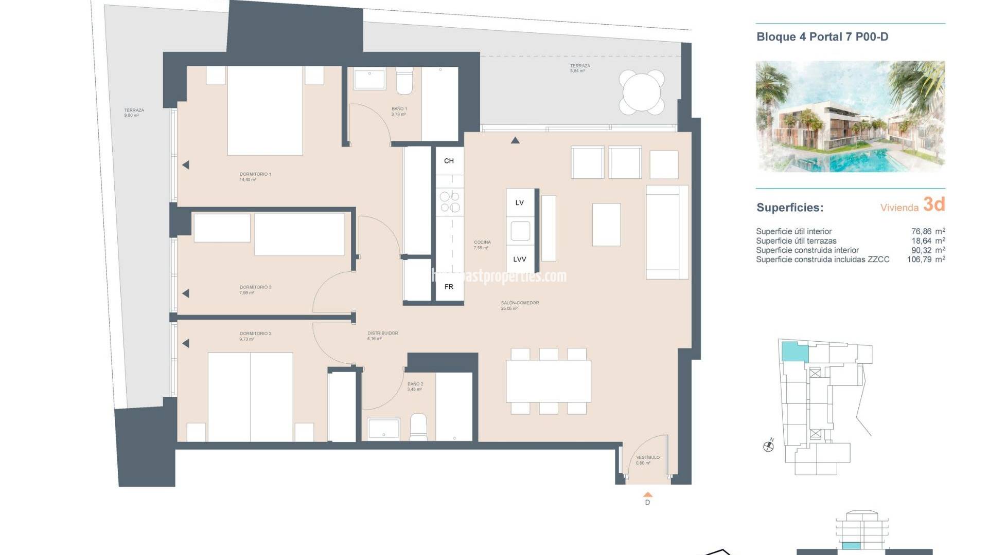НОВАЯ ЖИЛОЙ ДОМ В ХАВЕ В 5 МИНУТАХ ОТ ПЛЯЖА, ПОРТА И ЦЕНТРА !!! Новый жилой комплекс в нескольких минутах от пляжа, состоящий из 58 домов с 2, 3 и 4 спальнями, расположенных на первом этаже с садом, квартир с террасами на промежуточных этажах, пентхаусов и дуплексов с большими террасами. Кроме того, во всех домах будет гараж и кладовая. В жилом комплексе будет бассейн и общественный клуб. Вы можете настроить различные аспекты распределения, отделки и дополнительных опций вашего дома. Адаптируйте свой новый дом к своим вкусам и предпочтениям и создайте среду, о которой вы всегда мечтали. С детальным уходом за интерьером внешний вид дома не может быть меньше. Прекрасное сочетание авангардных тенденций и вневременной элегантности самых классических построек, прекрасная эстетика здания заключается в его фасаде, благодаря текстурам и цветам, интегрированным в его окружение. Наслаждайтесь своим новым домом в великолепном месте, где все, что вам нужно, всегда под рукой: рестораны, аптеки, супермаркеты, медицинские центры и Молинс де ла Плана, зеленые легкие в Хавеа. Кроме того, в непосредственной близости от вашего нового строящегося дома вы найдете автобусный вокзал Хавеи и дорогу CV-734 для легкого доступа.