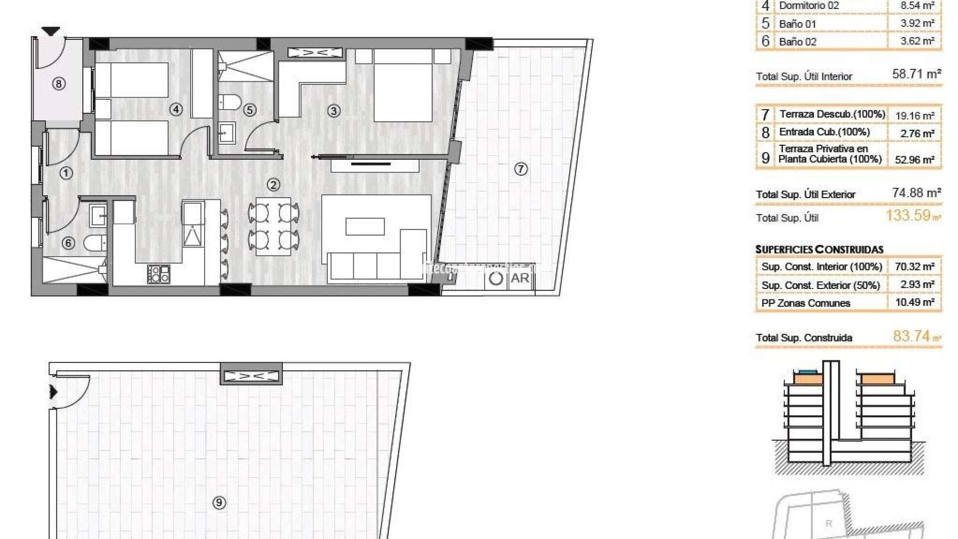 Новые апартаменты в центре Торревьехи Всего в 400 м от пляжа Плайя-дель-Кура Выгодное расположение в центре Торревьехи Этот новый жилой комплекс имеет выгодное расположение в центре Торревьехи, всего в 400 м от пляжа Плайя-дель-Кура. В окружении магазинов, супермаркетов, ресторанов и повседневных услуг, он предлагает все необходимое в шаговой доступности. В этом районе также есть парки, зоны отдыха и зеленые насаждения, что создает идеальный баланс между городским удобством и возможностью для отдыха. Современные дома с 2 и 3 спальнями Комплекс предлагает на выбор апартаменты с 2 и 3 спальнями, в том числе пентхаусы, некоторые из которых имеют частные солярии. Каждая квартира спроектирована в современном стиле, с открытой планировкой, большими террасами и встроенными кухнями американского типа. Ванные комнаты полностью оборудованы мебелью, душевыми перегородками и полами с подогревом. Кухни оснащены бытовой техникой, а в каждой квартире предусмотрена предварительная установка для канального кондиционирования. Дополнительно можно приобрести подземное парковочное место и кладовые комнаты. Удобства курортного типа для хорошего самочувствия Жители могут пользоваться рядом эксклюзивных удобств. На первом этаже находится полностью оборудованный тренажерный зал, идеально подходящий для ежедневных тренировок. Солярий на крыше — настоящий оазис релаксации с шезлонгами, финской сауной и мини-бассейном. Лифт и лестница ведут прямо на крышу, что обеспечивает максимальное удобство и доступность. Жизнь в уникальной природной и прибрежной среде Торревьеха известна своим теплым средиземноморским климатом со средней годовой температурой 20ºC, что делает ее идеальным местом для проживания круглый год. Город славится своими природными соляными лагунами и охраняемым природным парком Ла-Мата и Торревьеха, расположенным всего в 4 км от комплекса. Его розовые и зеленые озера, живописные пешеходные маршруты и богатое биоразнообразие предлагают здоровый и вдохновляющий образ жизни. Расстояния до основных достопримечательностей Пляж Плайя-дель-Кура 0,4 км Пристань для яхт Торревьеха 1 км Природный парк Ла-Мата 4 км Гольф-клуб Вильямартин 8 км Аэропорт Аликанте 45 км Аэропорт Мурсия 60 км Оцените средиземноморский образ жизни Не упустите возможность приобрести современный дом в одном из самых привлекательных прибрежных городов Коста-Бланки. Свяжитесь с нами сегодня, чтобы договориться о посещении и обеспечить себе место в этом исключительном новом комплексе.