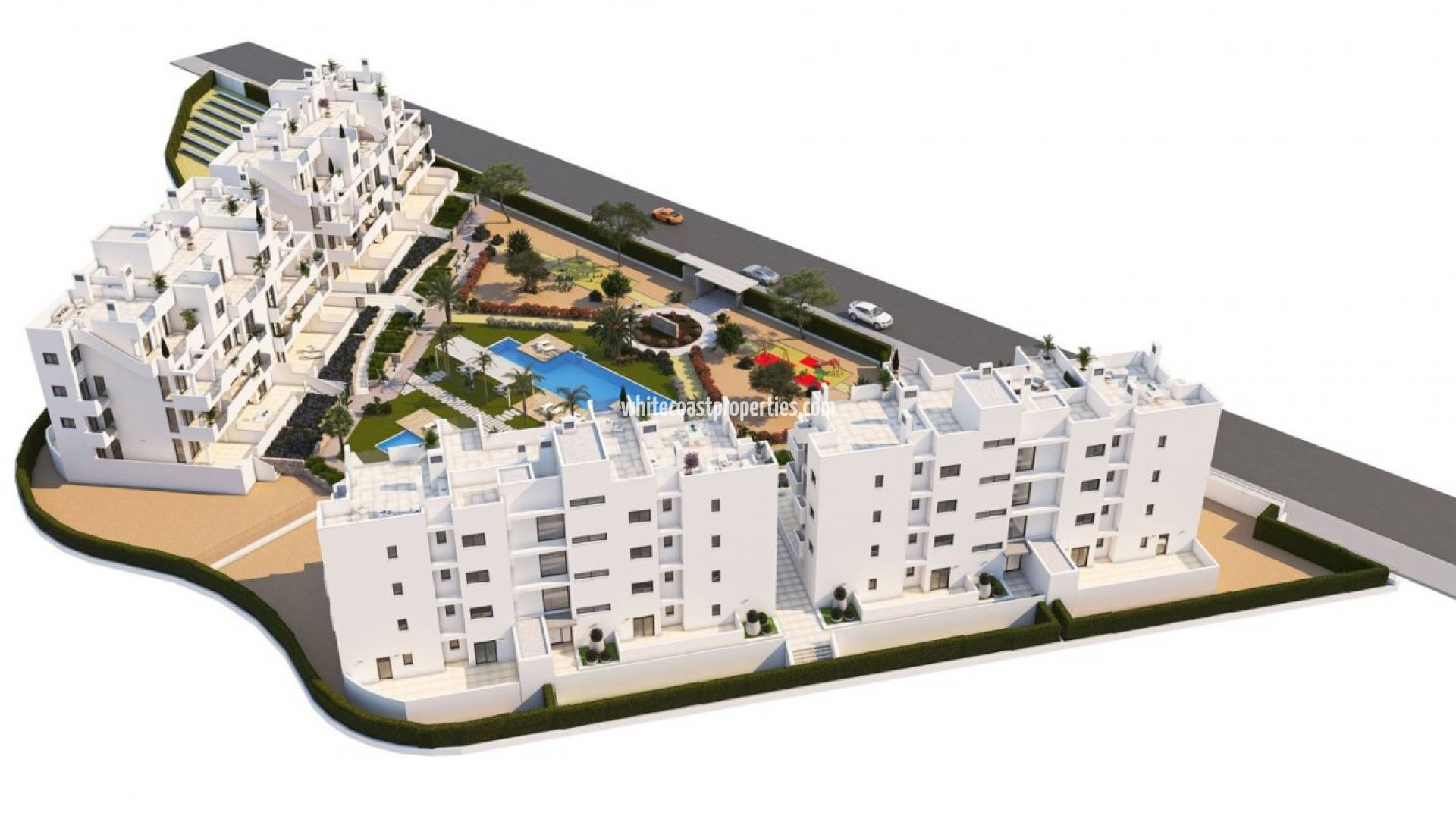 НОВЫЙ ЖИЛОЙ КОМПЛЕКС В ЧАСТНОМ ЗАКРЫТОМ КУРОРТЕ В ПРОВИНЦИИ МУРСИЯ Новый жилой комплекс состоит из 60 квартир, распределенных в 4 блоках с террасами на первом, втором и третьем этажах, общим бассейном, бассейном с подогревом и солярием с летней кухней на пентхаусах, чтобы наслаждаться всеми часами солнечного света каждый день в году. В домах есть 2 спальни и 2 ванные комнаты, а также парковочное место и кладовая в подвале. Эти дома выполнены в современном стиле и имеют открытую планировку, включающую полностью оборудованную кухню и гостиную-столовую. Недвижимость будет соответствовать самым высоким стандартам и включает в себя: Кухня полностью меблирована и оборудована духовкой и микроволновой печью в колонне, встроенным холодильником и посудомоечной машиной, индукционной плитой и вытяжкой. Светодиодное освещение: внутри недвижимости (столовая, кухня, коридоры и ванные комнаты), а также на открытых площадках. Выстроенные шкафы с выдвижными ящиками. Моторизованные жалюзи в спальнях. Полы с подогревом в ванных комнатах. Полностью оборудованные ванные комнаты с туалетом, тумбой, зеркалом, душем с эффектом дождя и экраном. Предварительная установка канального кондиционера. Предварительная установка точки зарядки для электромобилей. Солярий с летней кухней, с предварительной установкой электроприборов. Общий плавательный бассейн. Бассейн с подогревом. Парковочное место и кладовая в подвале. Расположен в частном закрытом комплексе с главным входом и круглосуточной охраной. Курорт спроектирован вокруг впечатляющей зеленой зоны площадью 126.000 м2. Он включает в себя пешеходные и велосипедные дорожки, спортивные сооружения, площадки для игры в паддл и теннис, поле для мини-гольфа, сады, парки для собак, зоны отдыха, клубный дом. Также в центральной части находится жемчужина курорта - кристально чистое искусственное озеро площадью почти 17.000 м2, окруженное белыми песчаными пляжами и пальмами, что привносит частичку Карибского моря в регион Мурсия. В озере есть 2 острова, на одном из которых есть собственный бар, а также "пляжные чирингитос", расположенные вокруг озера. Курорт стратегически расположен менее чем в 4 км от пляжа и города Лос Алькасарес, где вы можете заниматься различными водными видами спорта, в окружении нескольких полей для гольфа и города Картахена менее чем в 15 минутах езды на машине и в 22 км от аэропорта Мурсии, таким образом, имея широкое культурное, гастрономическое и спортивное предложение в пределах досягаемости.