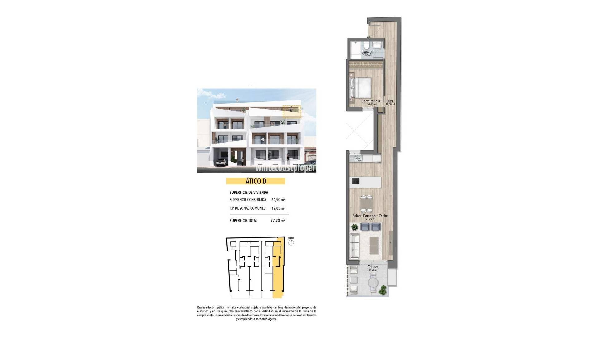 Современные апартаменты в 250 метрах от пляжа Эль Кура в Торревьехе Новый комплекс в престижном месте Этот недавно построенный многоквартирный дом расположен всего в 250 метрах от знаменитого пляжа Эль-Кура в Торревьехе, предлагая жителям легкий доступ к одному из самых популярных пляжей в этом районе. Здание состоит из 17 квартир с 1 и 2 спальнями, каждая с 1 или 2 ванными комнатами. Кроме того, имеются пентхаусы с частными соляриями и потрясающими видами на море, идеально подходящие для наслаждения средиземноморским стилем жизни. Удобства премиум-класса для отдыха Жильцы могут воспользоваться общественным бассейном и солярием на крыше, которые идеально подходят для отдыха после дня, проведенного на пляже. Здание также предлагает дополнительные места на подземной парковке и кладовые помещения, которые можно приобрести за дополнительную плату, что обеспечивает дополнительное удобство и безопасность для жильцов. Яркая городская жизнь в Торревьехе Торревьеха - оживленный город, известный своими круглогодичными культурными и развлекательными мероприятиями, что делает его отличным местом как для постоянных жителей, так и для отдыхающих. Мягкий климат и более 300 солнечных дней в году делают этот район идеальным для тех, кто любит активный отдых и пляжную жизнь. Идеальное расположение с легким доступом к достопримечательностям Этот дом идеально расположен вблизи всех основных услуг, включая супермаркеты, рестораны и развлекательные центры. До основных достопримечательностей можно легко добраться: Аэропорт Аликанте находится всего в 45 км. Несколько полей для гольфа в пределах 7-10 км. Торговый центр Zenia Boulevard находится всего в 8 км. Порт Торревьехи находится всего в 2 км от здания. Наслаждайтесь современной жизнью на берегу моря в оживленном и хорошо связанном районе, где все необходимое находится всего в нескольких минутах ходьбы.