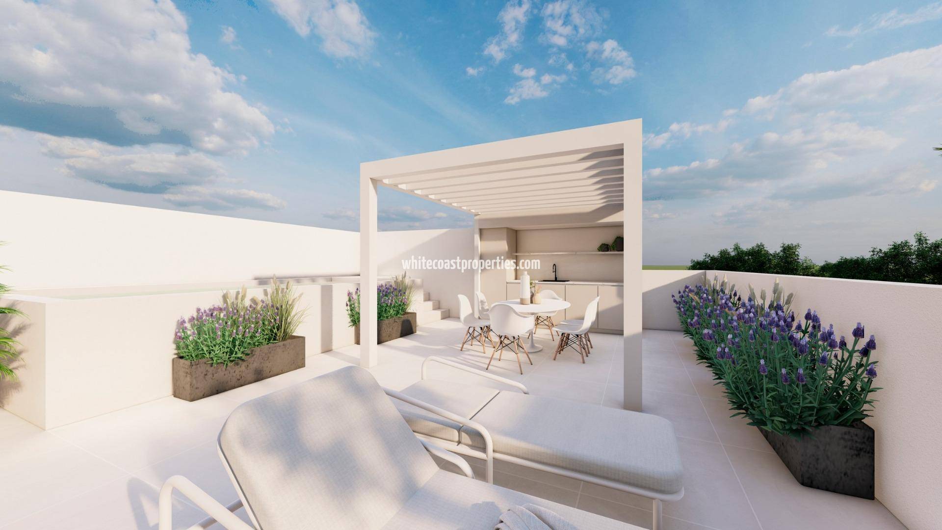 Эксклюзивные новые бунгало с частным бассейном в Пилар-де-ла-Орадада Современная жизнь в престижном месте на побережье Коста-Бланка Откройте для себя эксклюзивный новый комплекс, состоящий всего из двух бунгало премиум-класса, расположенный в самом сердце Пилар-де-ла-Орадада, очаровательного прибрежного городка на побережье Коста-Бланка, известного своими прекрасными песчаными пляжами, спокойной атмосферой и средиземноморским образом жизни. Жилой комплекс расположен всего в 2,5 км от пляжа и в нескольких минутах ходьбы от супермаркетов, магазинов, ресторанов и основных повседневных услуг. Благодаря отличному транспортному сообщению и близости аэропорта Аликанте, расположенного всего в 45 км, это место предлагает идеальный баланс между спокойствием, комфортом и доступностью. Два уникальных дома, созданных для комфорта Проект включает в себя два элегантных дома с 2 спальнями и 2 ванными комнатами, спроектированных с использованием высококачественной отделки и современной планировки. Одна из ванных комнат является ванной комнатой в спальне, что обеспечивает дополнительную приватность и удобство. Каждая недвижимость предлагает свой собственный неповторимый опыт проживания на открытом воздухе, соответствующий различным предпочтениям в образе жизни. Бунгало на первом этаже с просторным садом и частным бассейном На первом этаже находится просторный сад площадью 75 м2, идеально подходящий для обедов на открытом воздухе, принятия солнечных ванн и отдыха. Имеется частный бассейн, а также частная парковка на территории участка. Большие окна и открытые пространства создают светлую и уютную атмосферу во всем доме. Пентхаус-бунгало с частным солярием и бассейном Резиденция на верхнем этаже предлагает огороженное парковочное место на первом этаже и доступ по внешней лестнице. Она может похвастаться просторной террасой и частным солярием на крыше с собственным бассейном, создавая эксклюзивное место для наслаждения средиземноморским климатом и открытыми видами. Образ жизни в Пилар-де-ла-Орадада Этот прибрежный муниципалитет известен своей спокойной и расслабленной атмосферой, красивыми пляжами, такими как Миль Пальмерас, и широким спектром мероприятий на свежем воздухе. Сноркелинг, дайвинг, прогулки по побережью и велосипедные прогулки являются частью повседневного образа жизни, которым наслаждаются как жители, так и гости города. Любители природы оценят близость соляных озер Сан-Педро, расположенных примерно в 12 км, которые предлагают живописные пейзажи и дикую природу. Расстояния до основных достопримечательностей Пляж: 2,5 км Соляные озера Сан-Педро: 12 км Гольф-клуб Lo Romero: 6 км Аэропорт Аликанте: 45 км Аэропорт Мурсия: 40 км Торревьеха: 20 км Забеспечьте себе эксклюзивный дом уже сегодня Воспользуйтесь возможностью приобрести уникальную недвижимость с исключительными открытыми пространствами в одном из самых привлекательных районов Коста-Бланки. Свяжитесь с нами сегодня, чтобы договориться о посещении и забронировать свой новый дом в Пилар-де-ла-Орадада.