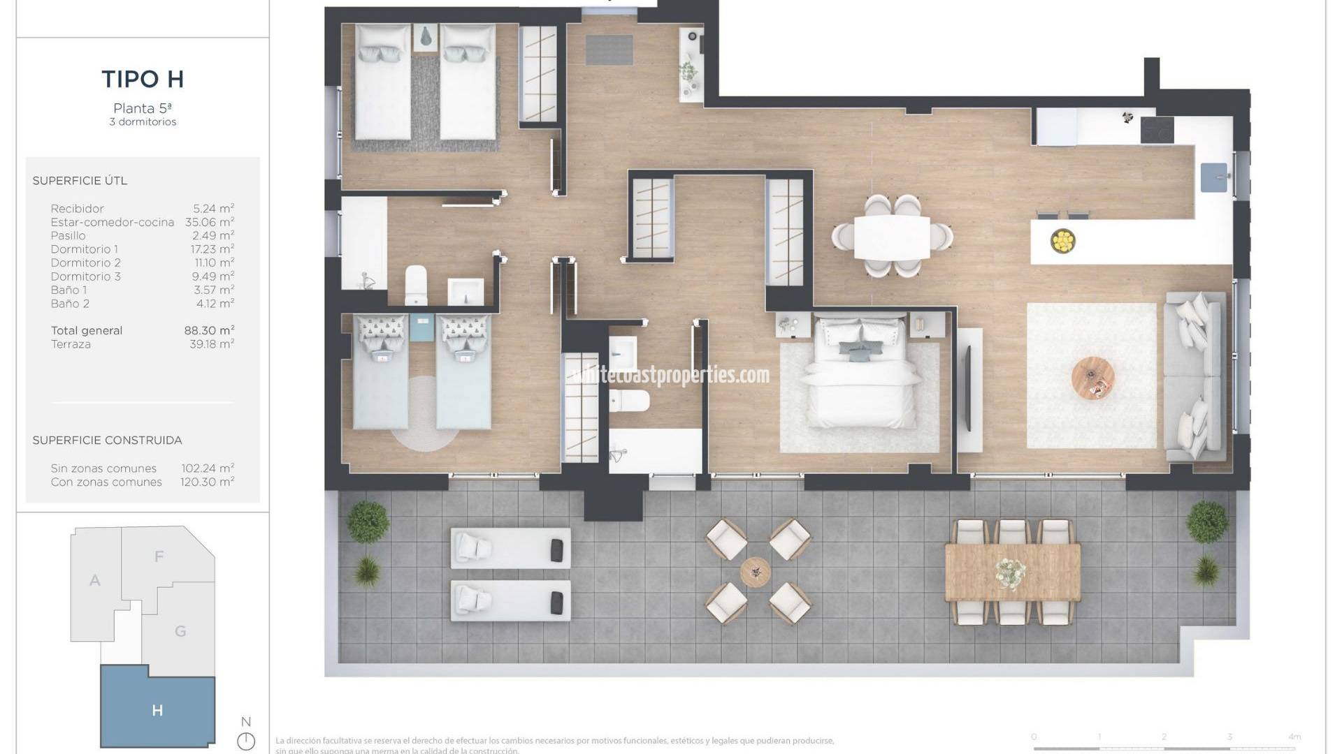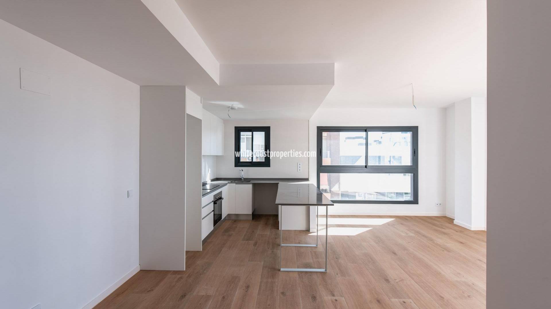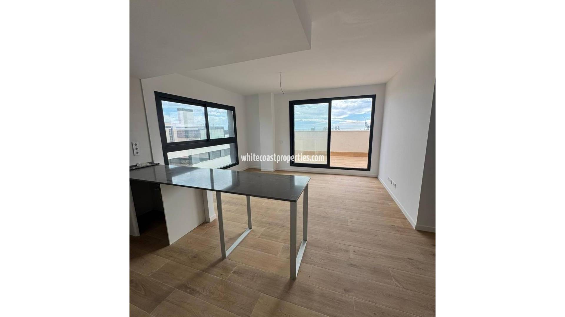 Новый пентхаус с 3 спальнями и видом на море в центре Аликанте, недалеко от Avenida Oscar Espla Превосходное расположение в самом центре города Аликанте Этот эксклюзивный новый комплекс из 28 современных апартаментов с 2 и 3 спальнями расположен рядом с проспектом Оскар Эспла, одним из главных проспектов Аликанте. Расположенный недалеко от проспекта Майсоннаве, самой коммерческой и динамичной улицы города, проект предлагает непревзойденное центральное расположение со всеми услугами, магазинами, ресторанами и общественным транспортом в шаговой доступности. От объекта недвижимости до станции скоростного поезда можно дойти пешком всего за 10 минут. Автобусная станция, набережная, пристань для яхт в порту Аликанте и пляж Плайя-дель-Постигет находятся менее чем в 2 км. Автомагистрали A31 и AP7 обеспечивают отличное дорожное сообщение, а аэропорт Аликанте находится всего в 13 км, примерно в 13 минутах езды на автомобиле. Просторный пентхаус с 3 спальнями и террасой 40 м2 Этот выдающийся пентхаус, готовый к заселению, предлагает 120 м2 жилой площади, распределенной между тремя спальнями и двумя полностью оборудованными ванными комнатами. Одна из спален выделяется своими просторными размерами, что делает ее идеальной для главной спальни. Большая гостиная является сердцем дома, наполненная естественным светом и предлагающая прекрасный вид на море, что создает уникальный опыт проживания в центре города. Изюминкой недвижимости является впечатляющая частная терраса площадью 40 м2, идеально подходящая для обедов на свежем воздухе, отдыха на солнце или приема друзей и семьи, наслаждаясь открытыми видами. Современное здание с премиальными общими зонами Здание оборудовано лифтом и полностью адаптировано для людей с ограниченными физическими возможностями. Жители могут пользоваться общим бассейном на крыше и солярием, идеально подходящими для охлаждения во время теплого средиземноморского лета. Также имеется специальное место для парковки велосипедов. К апартаментам прилагается подземное частное парковочное место и кладовая, что добавляет комфорта и практичности повседневной жизни. Качественные характеристики и энергоэффективность Апартаменты сдаются с высококачественной отделкой, включая встроенную кухню с керамической плитой, духовкой и вытяжкой, встроенные шкафы, усиленную входную дверь и аэротермальную систему для горячей воды. Внешняя столярка выполнена из алюминиевых рам с терморазрывом и двойным остеклением для лучшей теплоизоляции. Кондиционирование и отопление с помощью теплового насоса обеспечивают комфорт круглый год. Городская жизнь у моря Этот пентхаус сочетает в себе простор, вид на море и отличное центральное расположение в Аликанте. Свяжитесь с нами сегодня, чтобы получить дополнительную информацию или договориться о просмотре этой исключительной новой недвижимости. 234